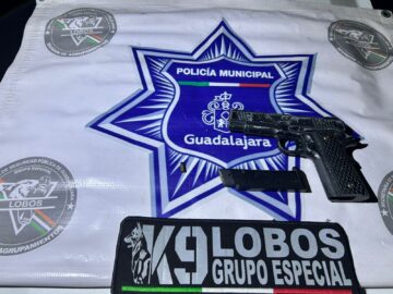** Se le aseguró un arma de fuego tipo escuadra con cartuchos útiles. Oficiales del Escuadrón K9 de la Comisaría de Seguridad Ciudadana de Guadalajara...