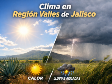 Región Valles de Jalisco tendrá calor de hasta 33°C este domingo, con probabilidad de lluvias aisladas por la tarde y rachas de viento. Autoridades piden...