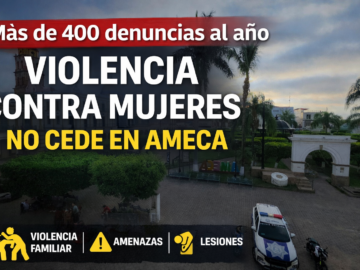 Ameca Jalisco, concentra el mayor número de denuncias por violencia contra mujeres en la Región Valles. Violencia familiar, lesiones y amenazas encabezan los delitos reportados.