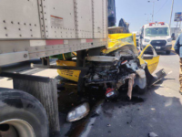 Accidente en El Salto deja 2 muertos tras impacto de camión T13-A contra camioneta. Las víctimas quedaron prensadas; el conductor del transporte huyó del lugar.