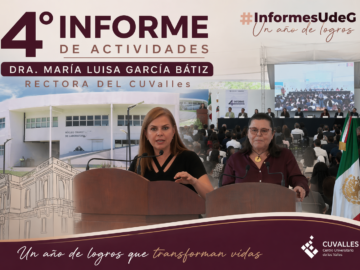 La rectora María Luisa García Bátiz presentó su Cuarto Informe de Actividades del CUValles, destacando crecimiento en matrícula, becas, programas y desarrollo regional