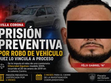 Vinculan a proceso a un hombre por robo de vehículo en Villa Corona; le dictan prisión preventiva por seis meses tras hechos ocurridos en 2019...