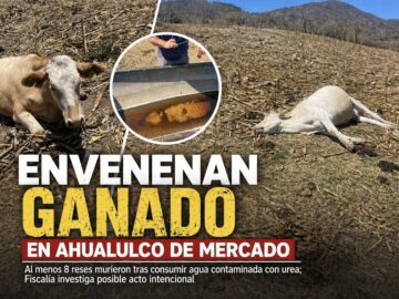Al menos 8 reses murieron en Ahualulco de Mercado tras presunto envenenamiento con urea en un potrero. Fiscalía ya investiga posible acto intencional.