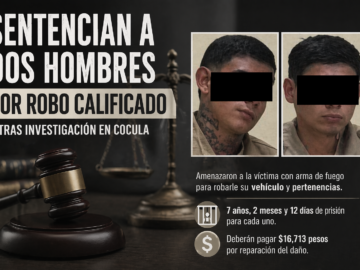 Dos hombres fueron sentenciados a más de 7 años de prisión por robar con violencia un vehículo en Cocula. Amenazaron a la víctima con arma...