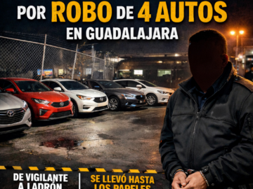 Exelemento de seguridad fue detenido en Guadalajara por el presunto robo de cuatro vehículos de KAVAK en plaza de López Mateos. Habría sustraído también la...