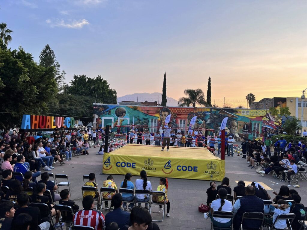 Ahualulco vivió una tarde deportiva llena de box, lucha libre, pláticas motivacionales y entrega de material deportivo por parte de CODE Jalisco, impulsando el desarrollo de jóvenes y academias de la región