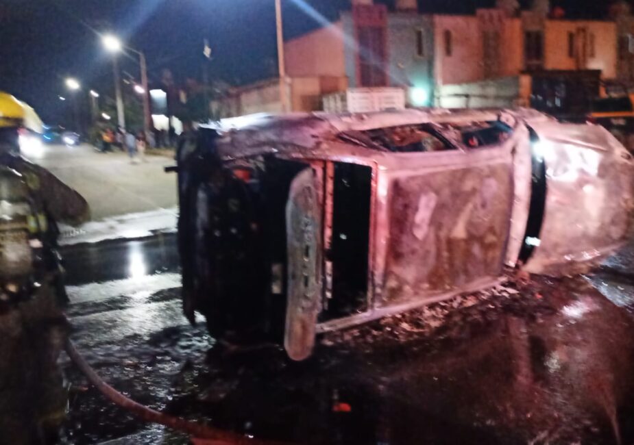 Dos lesionados, entre ellos un menor, dejó un atropellamiento que derivó en volcadura e incendio de vehículo en Paseos del Valle, Tlajomulco. El caso ya está en manos del Ministerio Público