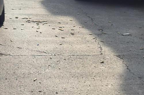 En el lugar quedaron decenas de casquillos percutidos de distintos calibres, cargadores, un radio de comunicación, cristales rotos, así como una camioneta blanca dañada que terminó sobre la banqueta.
