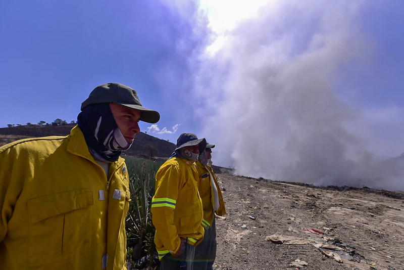 Al momento de la inspección, los funcionarios detectaron además un incendio activo dentro del predio, el cual generaba humo contaminante que se dispersaba hacia la atmósfera. La emergencia fue atendida por elementos de la Unidad Estatal de Protección Civil y Bomberos de Jalisco, quienes trabajaron para controlar el fuego.