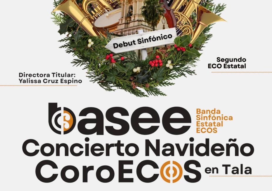La Banda Sinfónica Estatal ECOS debutará el 15 de diciembre en Tala con un concierto navideño gratuito, acompañada por el Coro ECOS, como cierre anual del programa Música para la Paz.