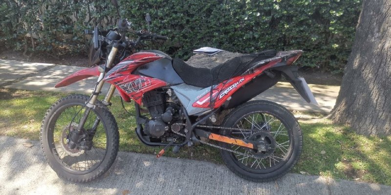 Se trataba de una unidad tipo Vento Cross Max 250cc, color negro. Al notar la presencia de los uniformados, los tripulantes mostraron una actitud inusual, lo que derivó en que se les marcara el alto para una revisión preventiva.
