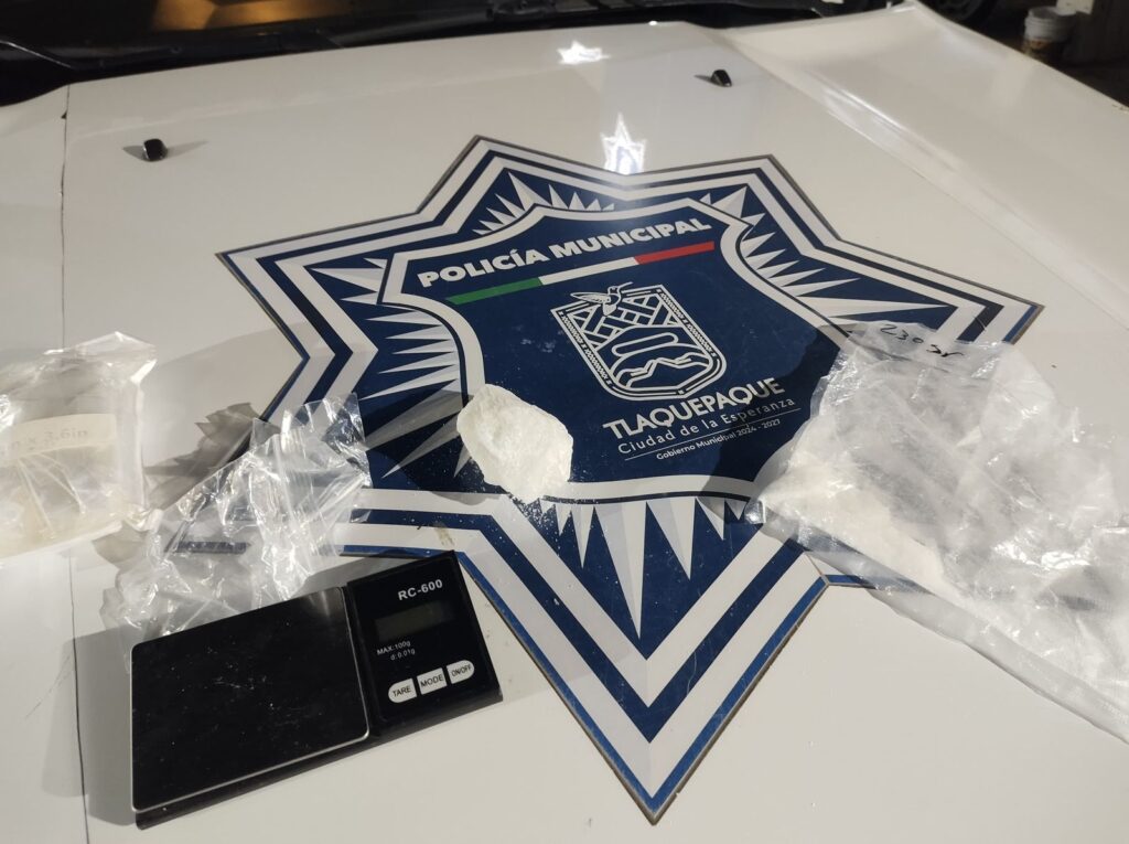 Un joven intentó huir al ver policías en Tlaquepaque, pero llevaba una pipa de cristal en la mano. Tras revisarlo, hallaron báscula gramera y envoltorios con presunta droga.