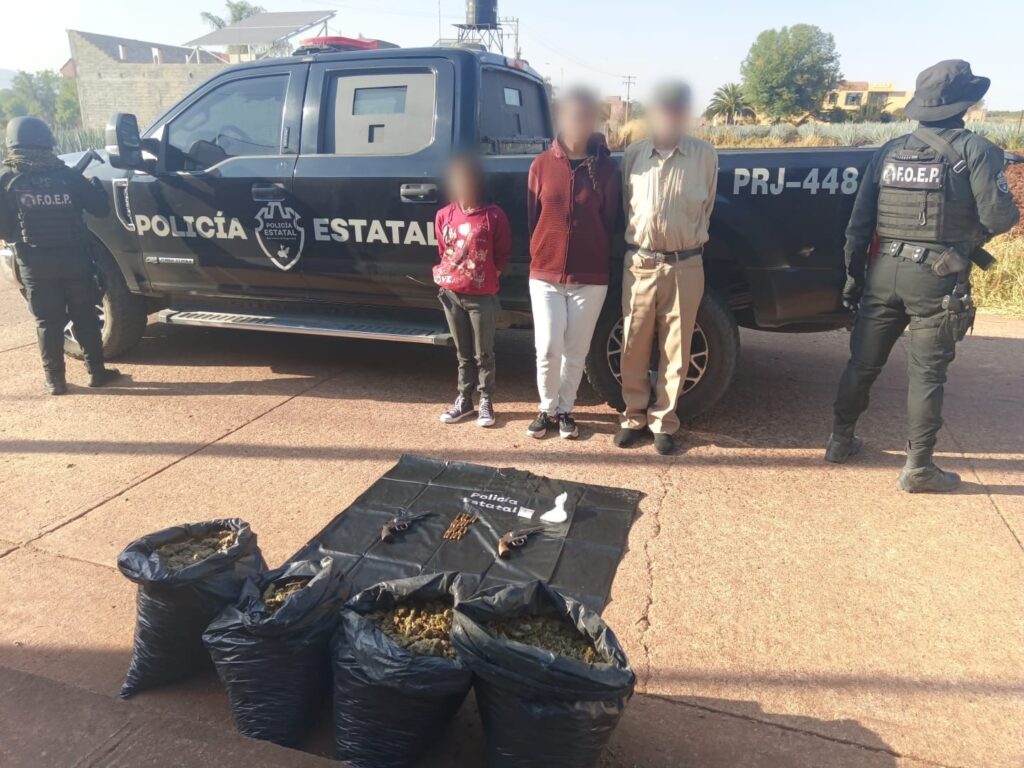 Detiene Policía del estado a personas armadas y con droga, en san Ignacio Cerro Gordo.
