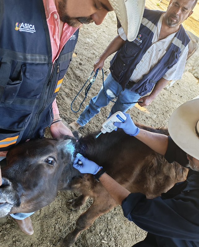Además, se instalaron puntos de inspección y tratamiento en ganado en tránsito, donde participan siete binomios caninos especializados en detección oportuna.