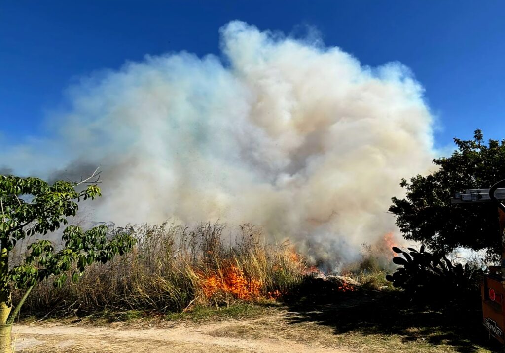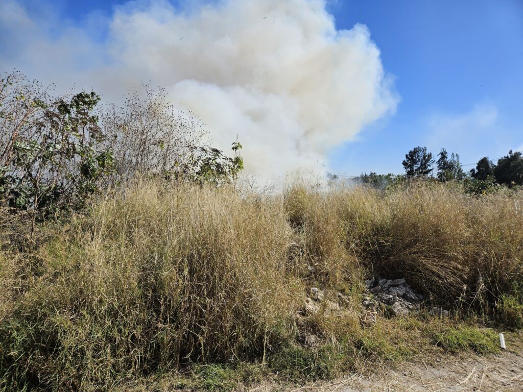 El primer reporte se recibió alrededor de las 3:15 de la tarde, cuando vecinos alertaron sobre un incendio de pastizal en Arroyo Durango. De inmediato se movilizó la unidad PC-05 al punto señalado, iniciando trabajos de sofocación. Sin embargo, debido a la magnitud del fuego, fue necesario solicitar refuerzos, por lo que se desplegaron todas las unidades disponibles, además de una pipa de apoyo.