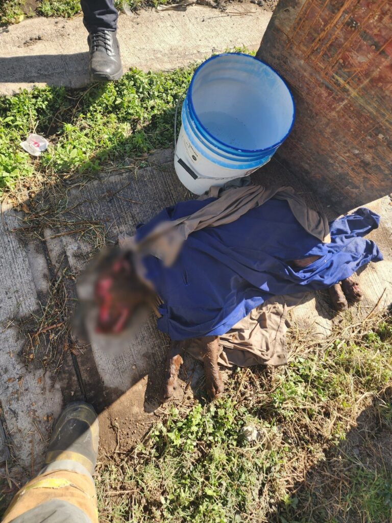 El canino logró ser extraído con vida, aunque presentó quemaduras, por lo que se solicitó apoyo de Protección Animal y de Seguridad Pública, quienes colaboraron en su traslado para recibir atención médica veterinaria urgente.