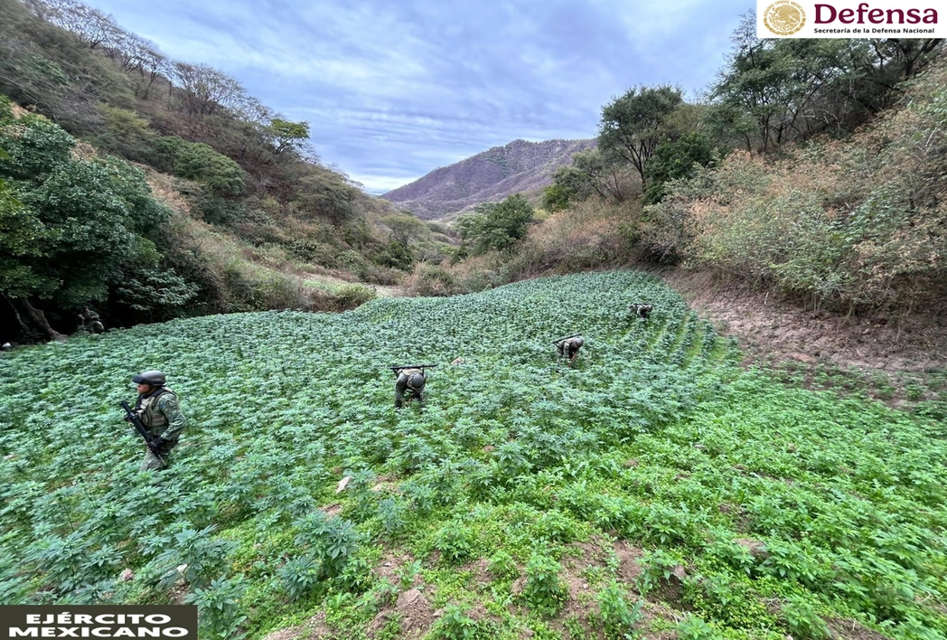 Ante el hallazgo de los plantíos de enervantes, el personal militar estableció perímetros de seguridad y destruyó aproximadamente 25 hectáreas de amapola y 11.6 hectáreas de mariguana.