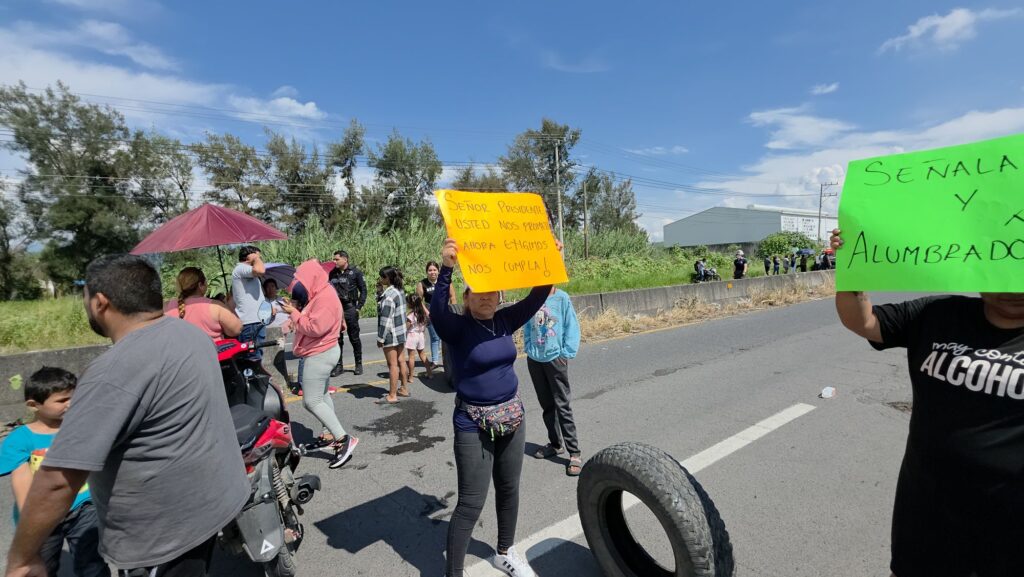 De acuerdo con los manifestantes, en lo que va de septiembre ya suman tres muertes en la zona, todas de personas que se dirigían a sus trabajos en las primeras horas de la mañana. La falta de topes, señalamientos y alumbrado público han convertido este punto en un tramo de alto riesgo, aseguran.
