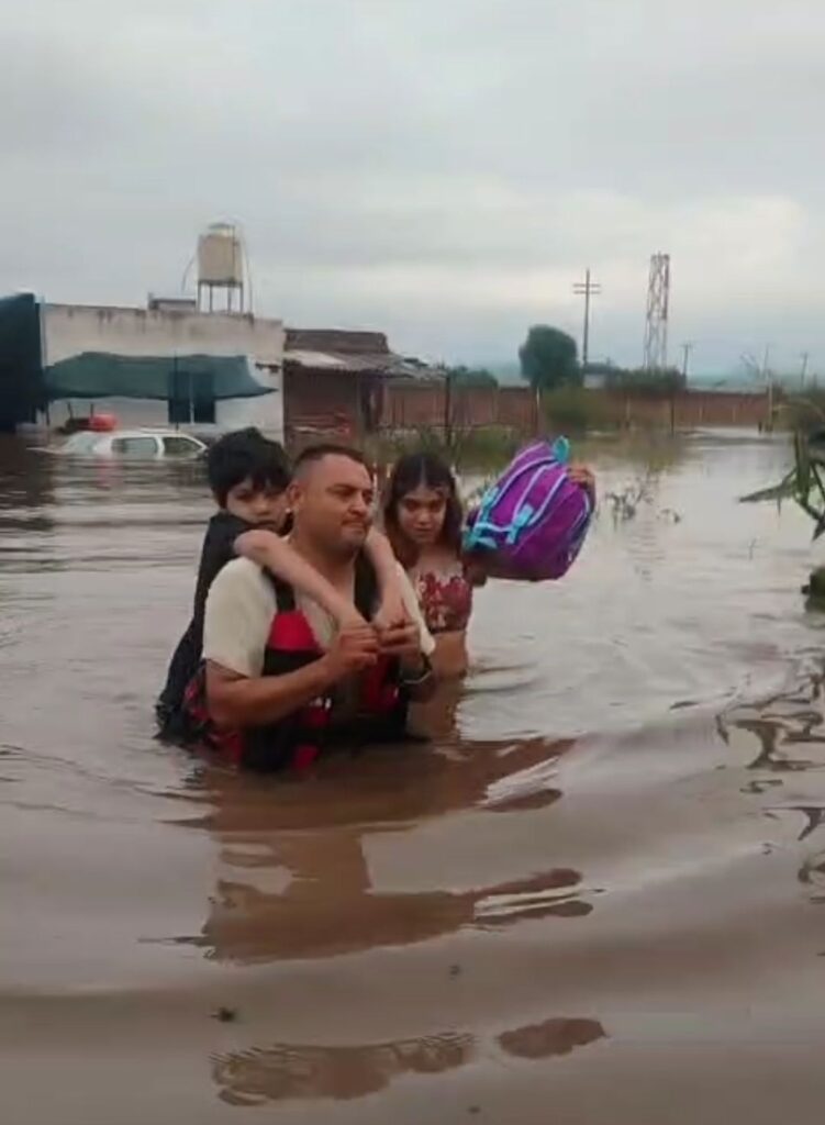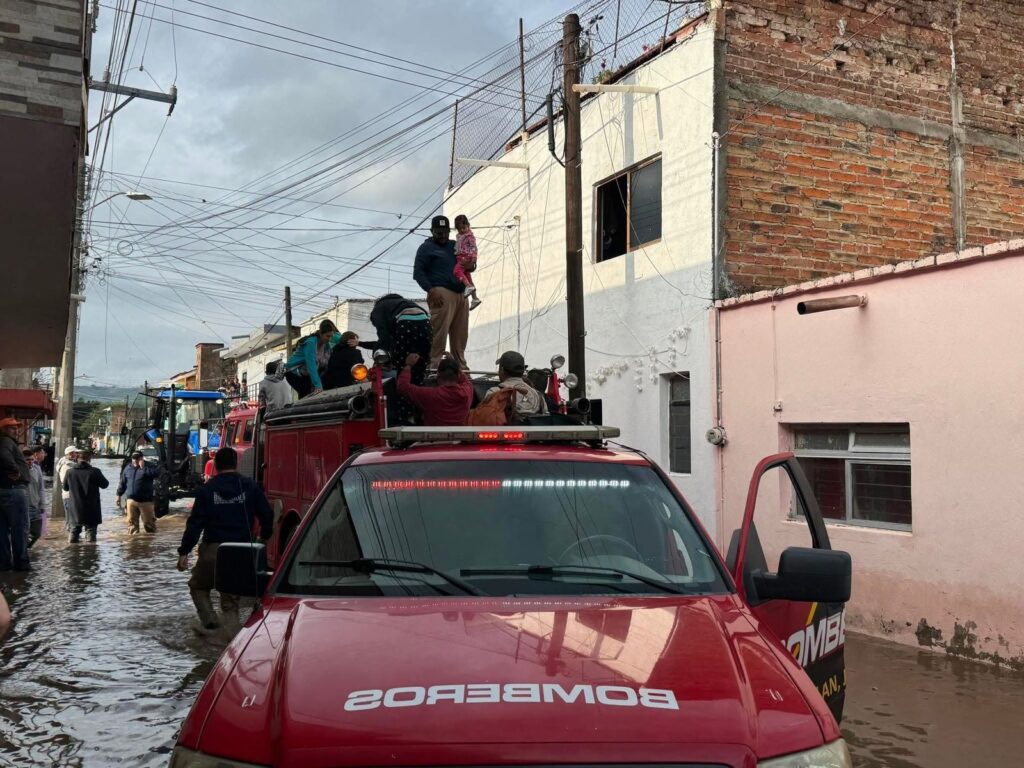 Elementos de Protección Civil y bomberos locales, con apoyo de maquinaria pesada, realizaron maniobras para sacar a las personas de las zonas anegadas y trasladarlas hasta el albergue temporal habilitado en el Centro de Catequesis, bajo resguardo del DIF.