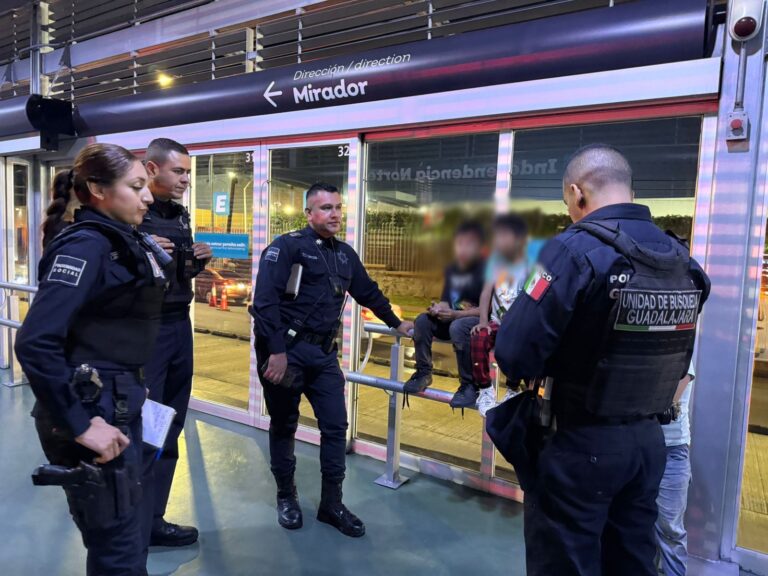 Guadalajara, Jal. — Oficiales de la Unidad de Búsqueda de Personas Desaparecidas (UBPD) de la Comisaría de Seguridad Ciudadana de Guadalajara auxiliaron a tres niños y una niña que se encontraban extraviados en la estación Independencia Norte de Mi Macro Calzada.