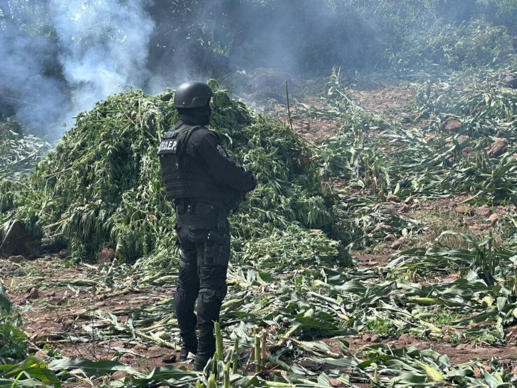Un operativo de la Policía de Jalisco permitió el hallazgo y destrucción de cerca de 70 mil plantas de aparente marihuana en un predio ubicado en la zona conocida como La Cueva, en el municipio de Tequila.