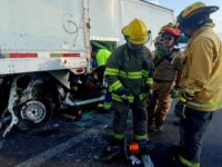 Choque entre camión y tráiler en carretera a Morelia, en Tlajomulco, deja a un joven prensado. Fue rescatado y trasladado al IMSS en estado regular.