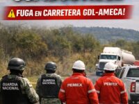 Fuerte olor a combustible alertó sobre una fuga en la carretera Guadalajara-Ameca, cerca de Acacias. Autoridades controlaron el incidente sin reportes de lesionados.