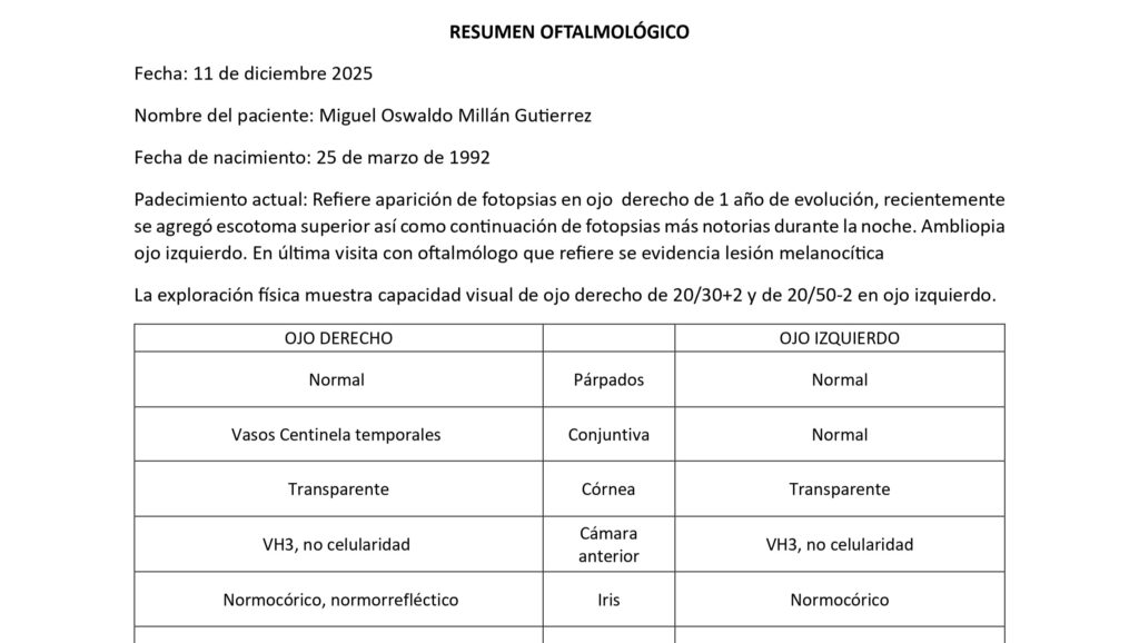 La situación médica es delicada. De no recibir tratamiento inmediato, el melanoma coroideo puede extenderse a otros órganos como el hígado o los pulmones, poniendo en riesgo no solo su visión, sino su vida.