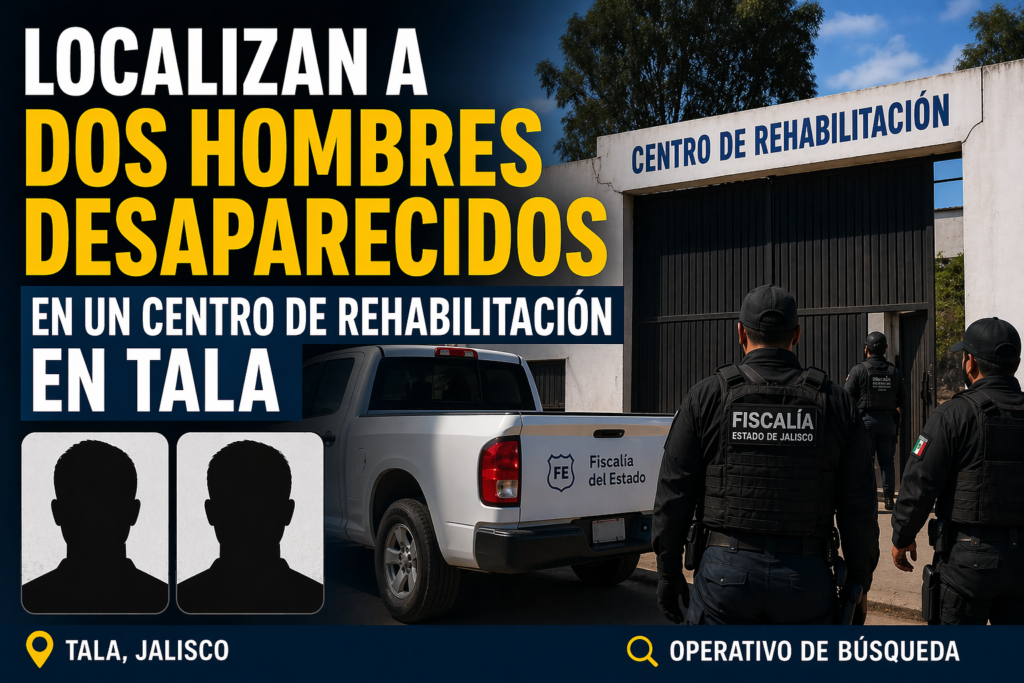Un operativo de búsqueda en el municipio de Tala permitió un doble resultado positivo: la localización de dos hombres que contaban con reporte de desaparición y que se encontraban internados en un centro de rehabilitación.