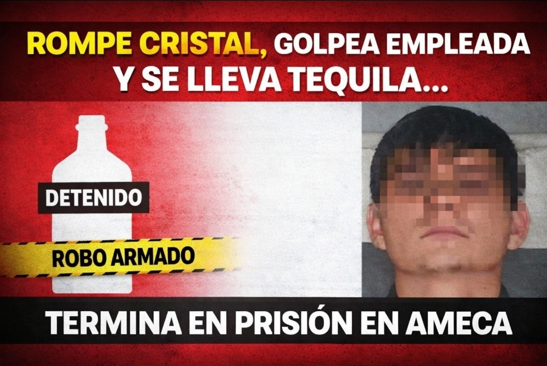Rompe cristal, golpea empleada y se lleva tequila… termina en prisión en Ameca
