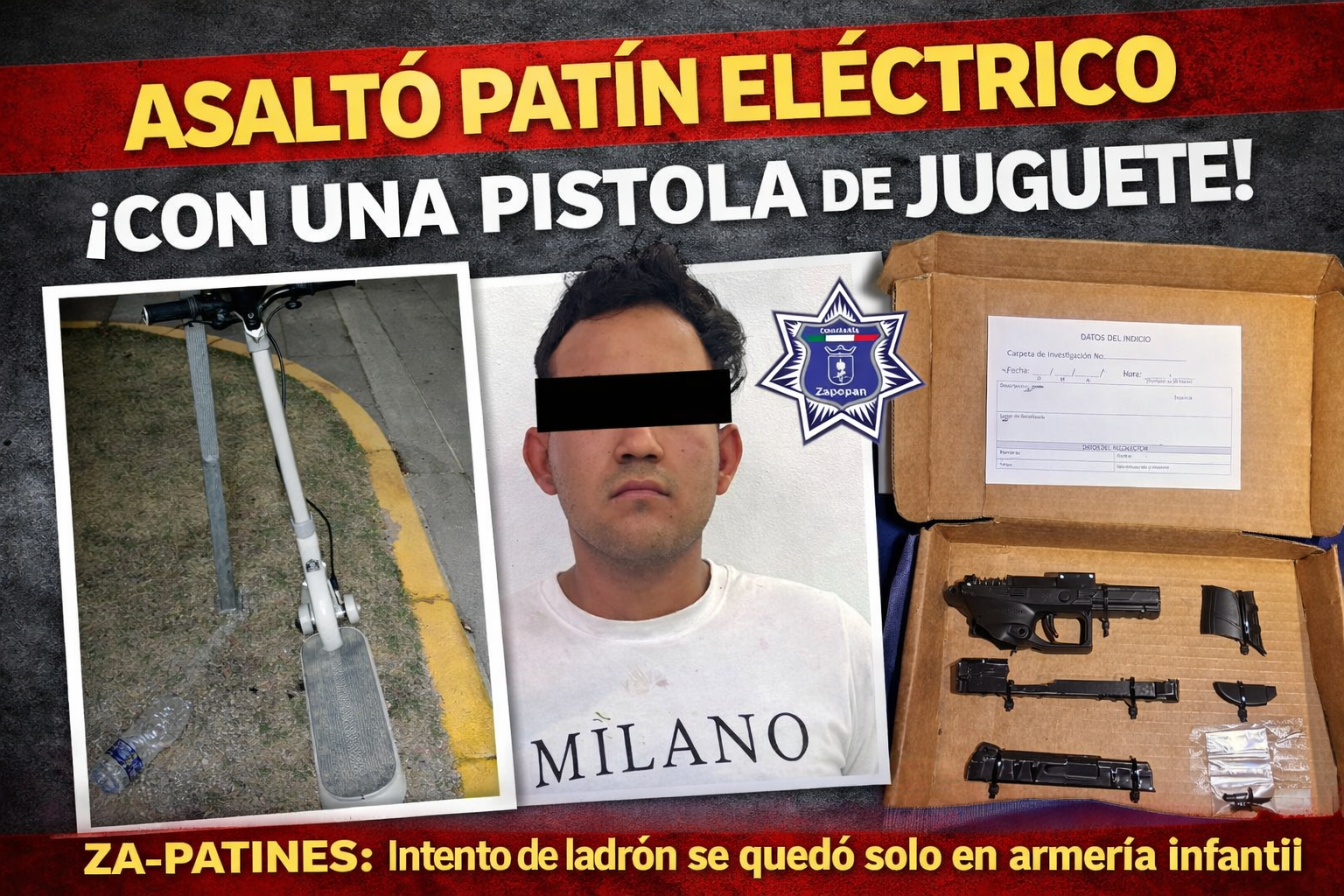 Detienen a joven que robó patín eléctrico con pistola… de juguete Published admin 13 marzo, 2026 Jalisco