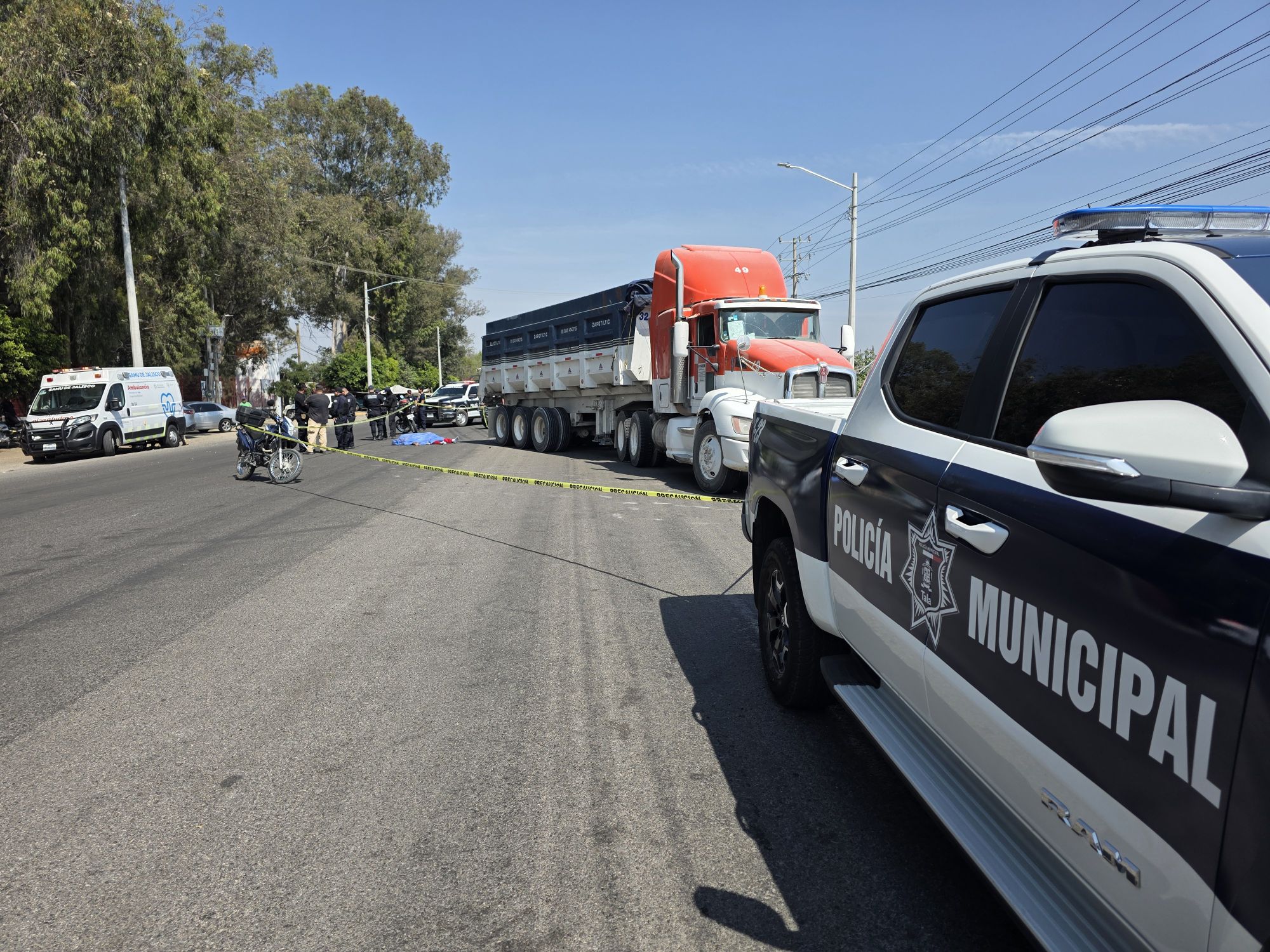 Un joven de aproximadamente 16 años murió tras ser arrollado por un tráiler en la carretera Tala–San Isidro, frente a la Unidad Deportiva Manuel M10. El conductor fue retenido y la vía presenta cierre parcial.