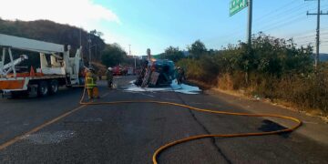 Volcadura de pipa con 31 mil litros de combustible en el crucero La Barca–Atotonilco. No hubo lesionados; fuga menor fue controlada y continúan maniobras.