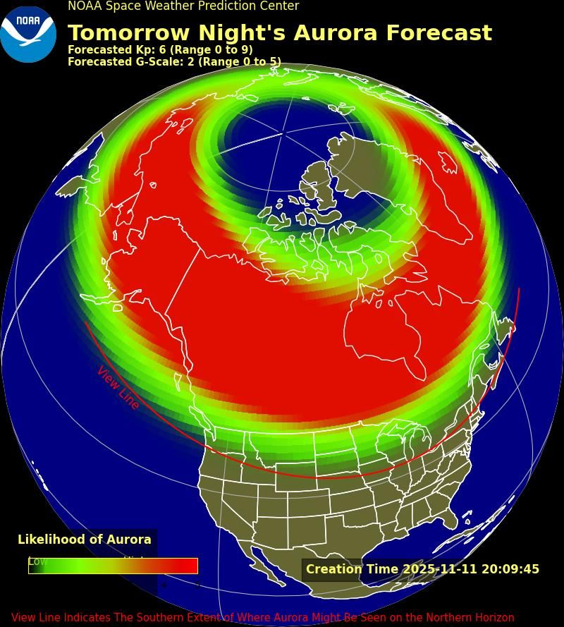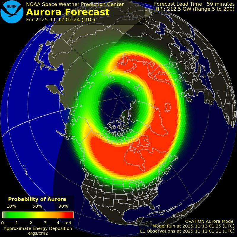 La agencia confirmó que entre el 11 y 12 de noviembre se espera el impacto más fuerte, con niveles de tormenta geomagnética G2 (moderada) y G4 (severa) respectivamente, mientras que el 13 de noviembre se mantendrá una vigilancia de nivel G3 (fuerte).