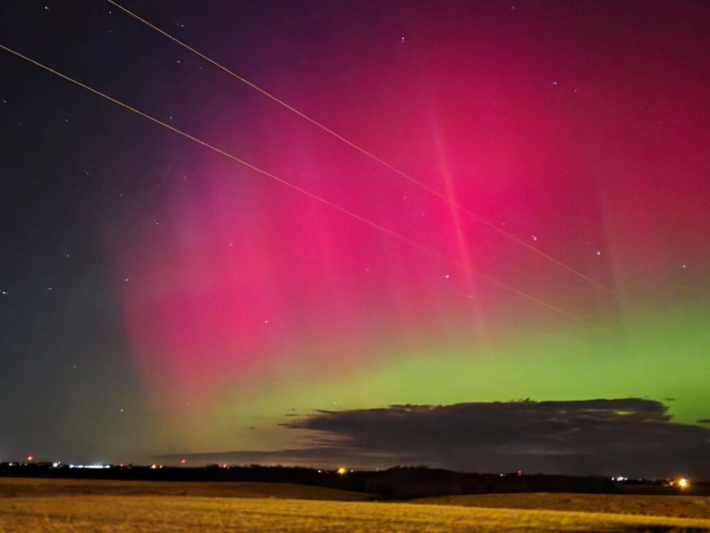Auroras boreales visibles más al sur de lo habitual, posiblemente alcanzando regiones de Estados Unidos como Alabama o el norte de California.