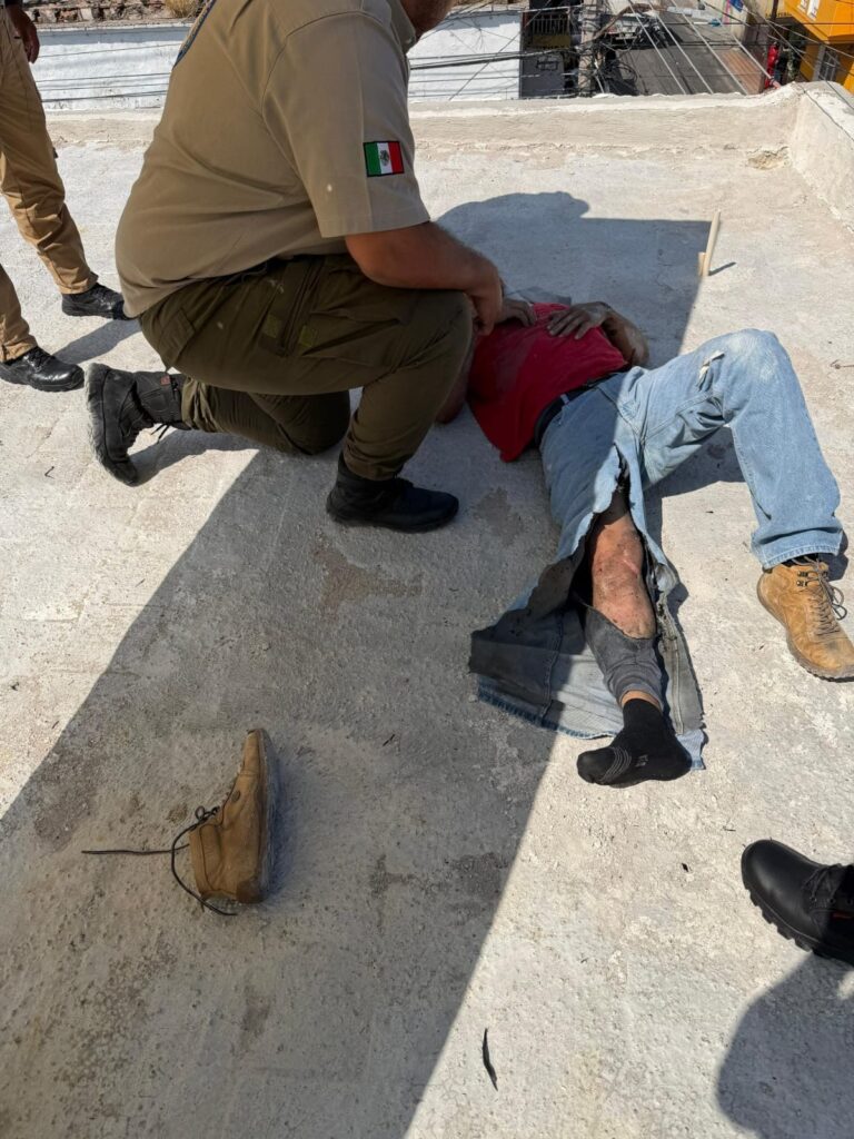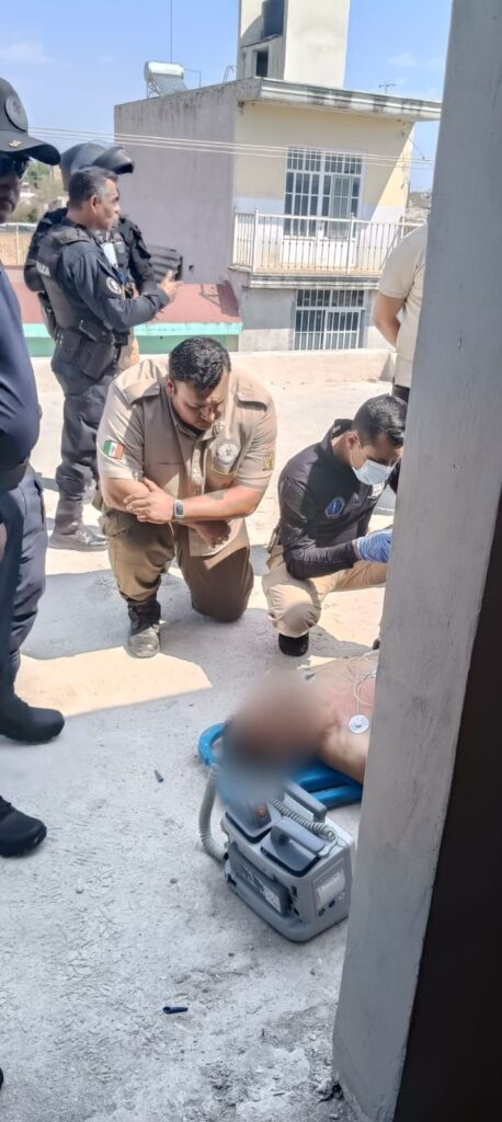 Paramédicos brindaron atención prehospitalaria al hombre lesionado, quien presentaba quemaduras por descarga eléctrica en gran parte de su cuerpo, por lo que fue estabilizado y trasladado para recibir atención médica especializada.