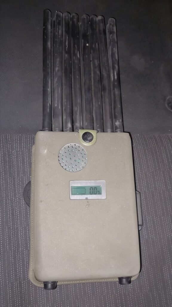 Durante la inspección de la unidad, los elementos aseguraron un dispositivo con características de inhibidor de señal, herramienta comúnmente utilizada en el robo de transporte de carga para evitar su rastreo satelital.