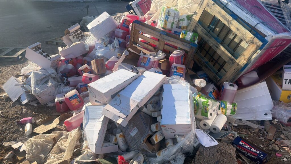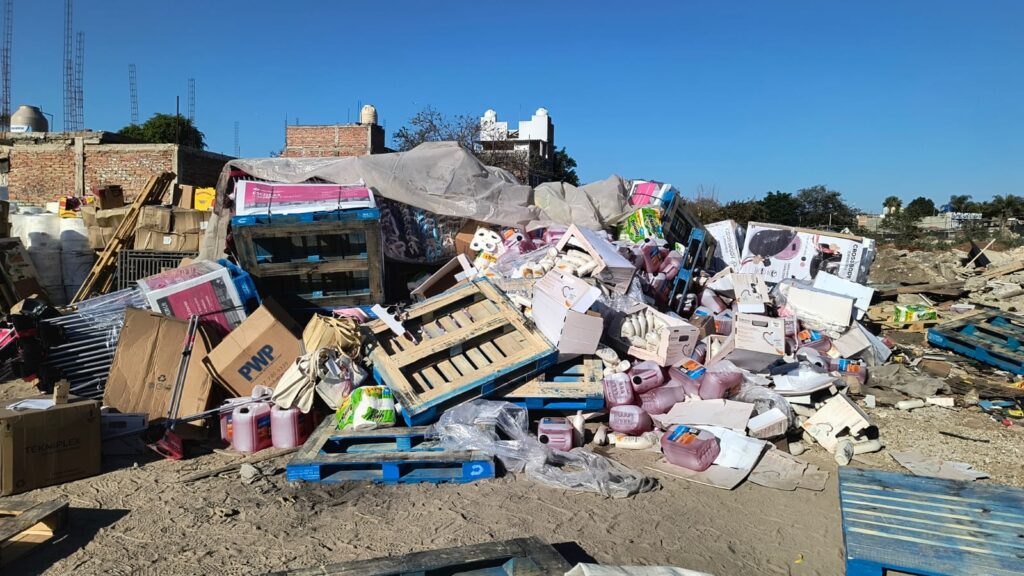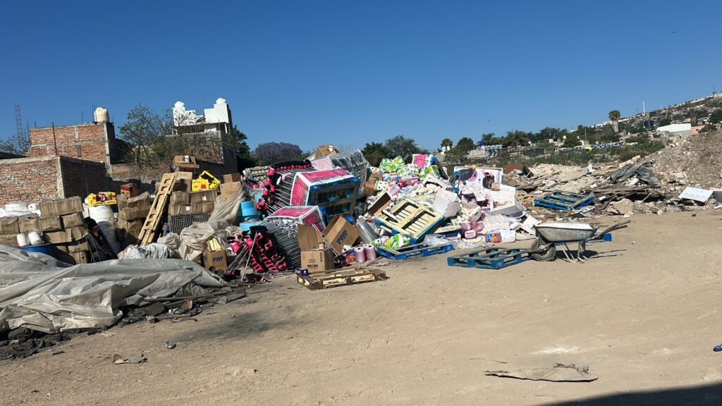 Horas más tarde, como parte del seguimiento en la zona, los oficiales localizaron en un predio cercano —sobre las calles Jardinero y Del Sastre— la mercancía robada, consistente en productos de abarrotes, entre ellos escobas y cajas de dulces.