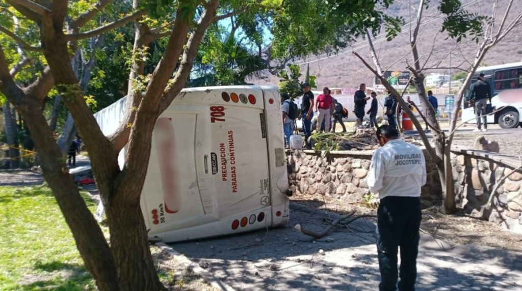 Jocotepec, Jalisco. — La volcadura de un camión de pasajeros de la ruta Chapala registrada la tarde de este lunes 2 de marzo sobre la carretera Jocotepec–Chapala, a la altura del Libramiento, dejó un saldo preliminar de 27 personas lesionadas, de acuerdo con información actualizada por autoridades municipales.