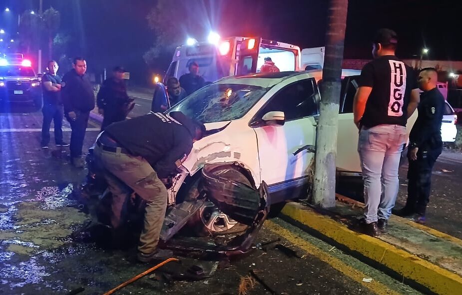 Dos personas resultaron lesionadas tras la volcadura de una camioneta Honda CR-V ocurrida durante la madrugada de este 23 de noviembre en avenida Solidaridad, a las afueras del salón de Dieguez, en el municipio de Tala.