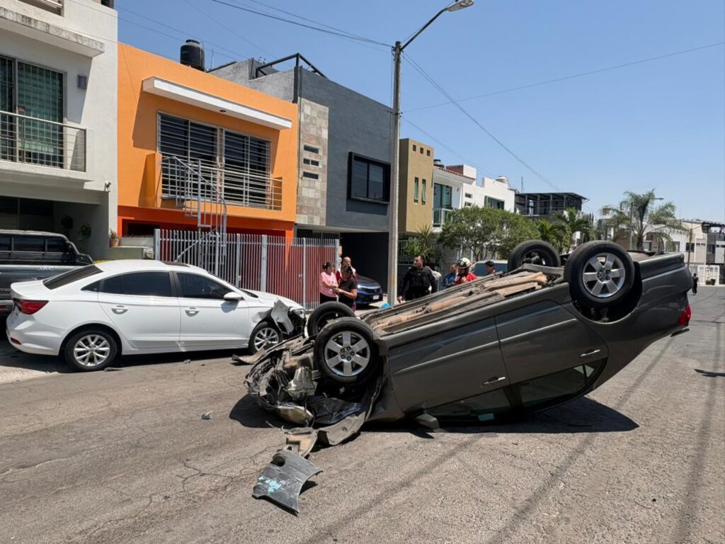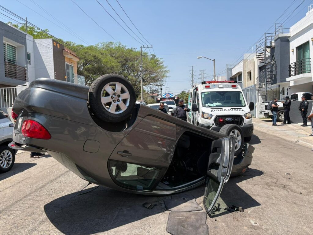 La tarde de este martes se registró un accidente vehicular en la colonia San Isidro, en el municipio de Zapopan, luego de que un automóvil terminara volcado en un cruce habitacional.